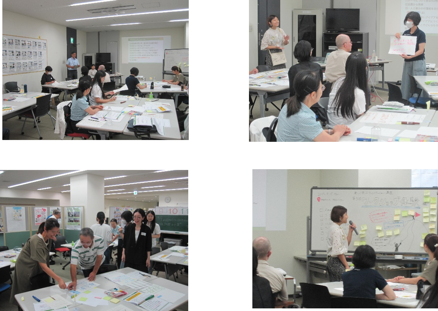 参加者の皆さんは、積極的に手を挙げ、意見を出し合うなど、ワークショップの基本となる「自ら活動的に参加し、創造する」が実践され、参加者同士が楽しく語り合う交流の場面も見受けられるなど、有意義な講座となりました。